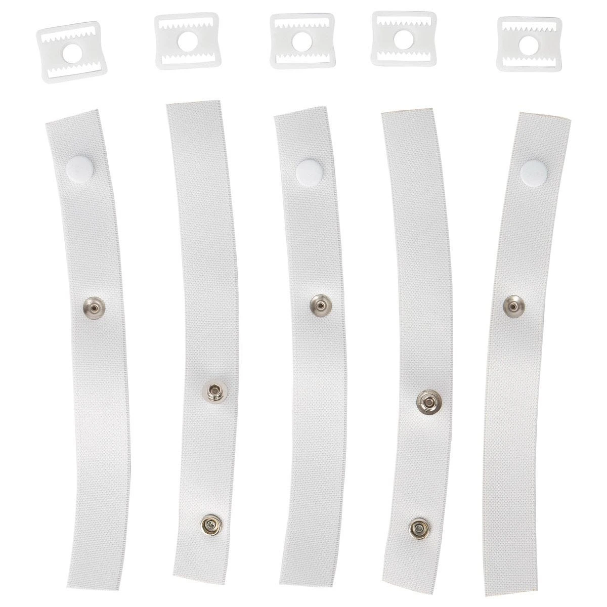 Five (5) Elastic StrapsFive (5) Plastic Slide through SnapsFits Most Goalie Masks